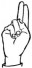 На ћирилици написано ДАНИЛО ГОДОЧЕВИЋ састоји се из 15 слова [?]. Исписано ћириличном једноручном азбуком за глувонеме: